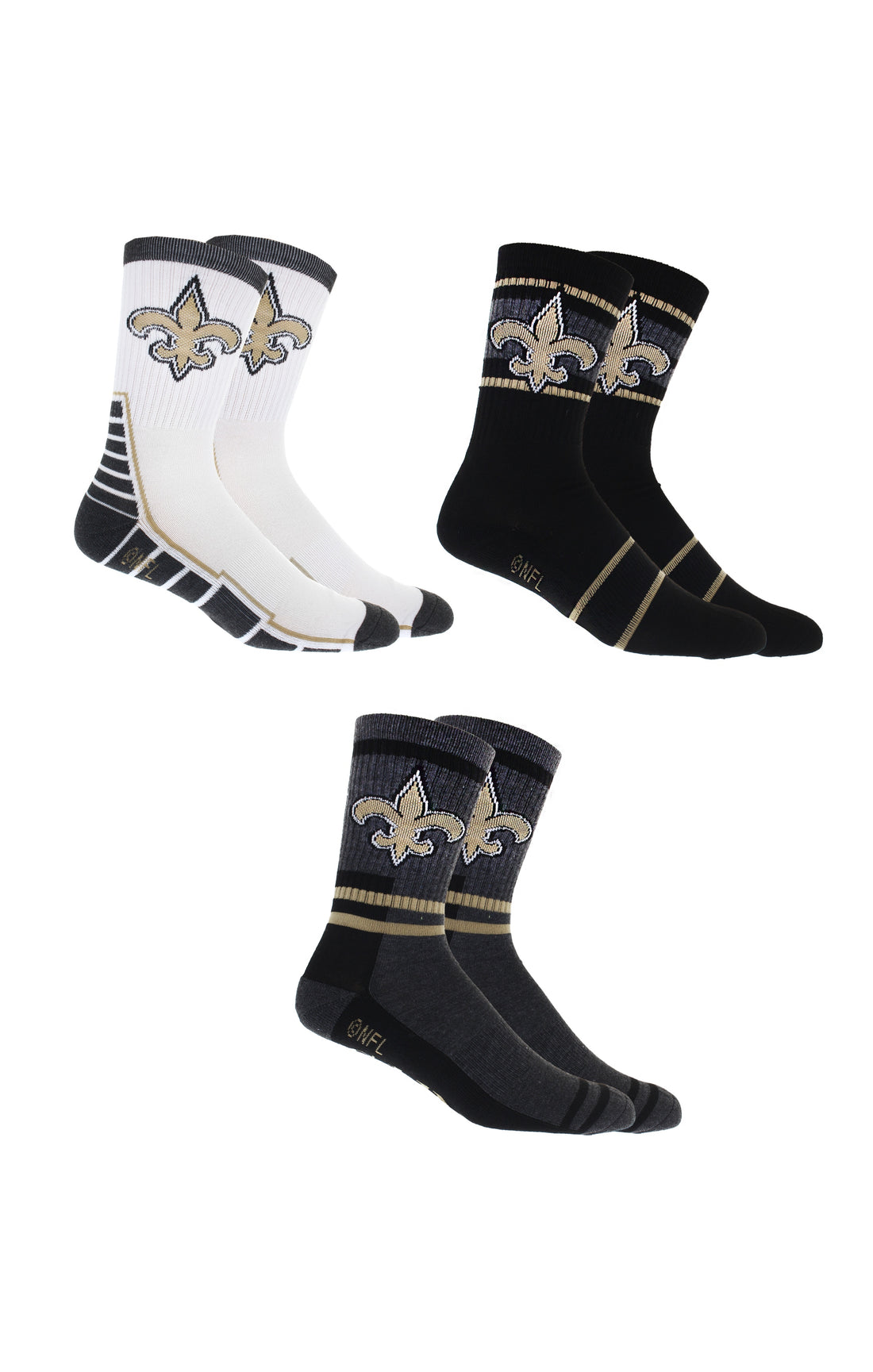 New Orleans Saints Socks 3 Pack Crew Length NFL Football