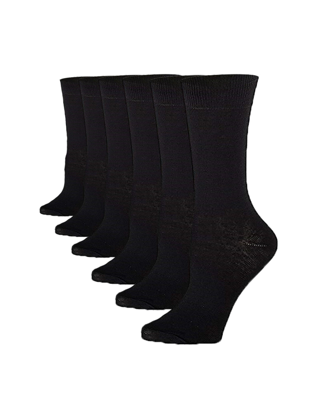 Women's 6-Pairs Sleek Elegant Solid Plain Black Monochrome Crew Dress