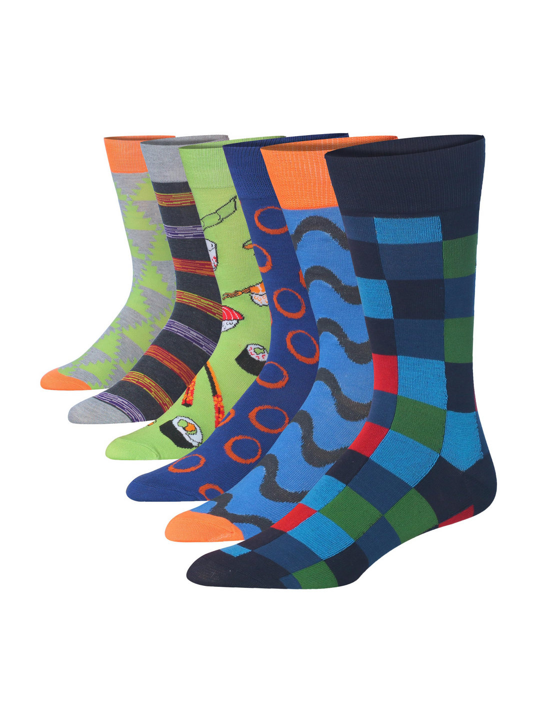 Men's 6 Pairs Casual Novelty Chaos Fiesta Colorful Patterned Dress