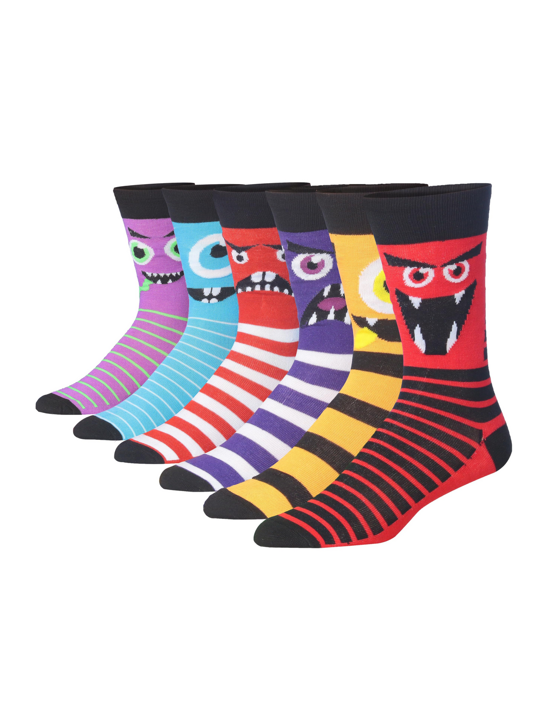 Men's 6 Pairs Casual Novelty Monster Mania Colorful Patterned Dress