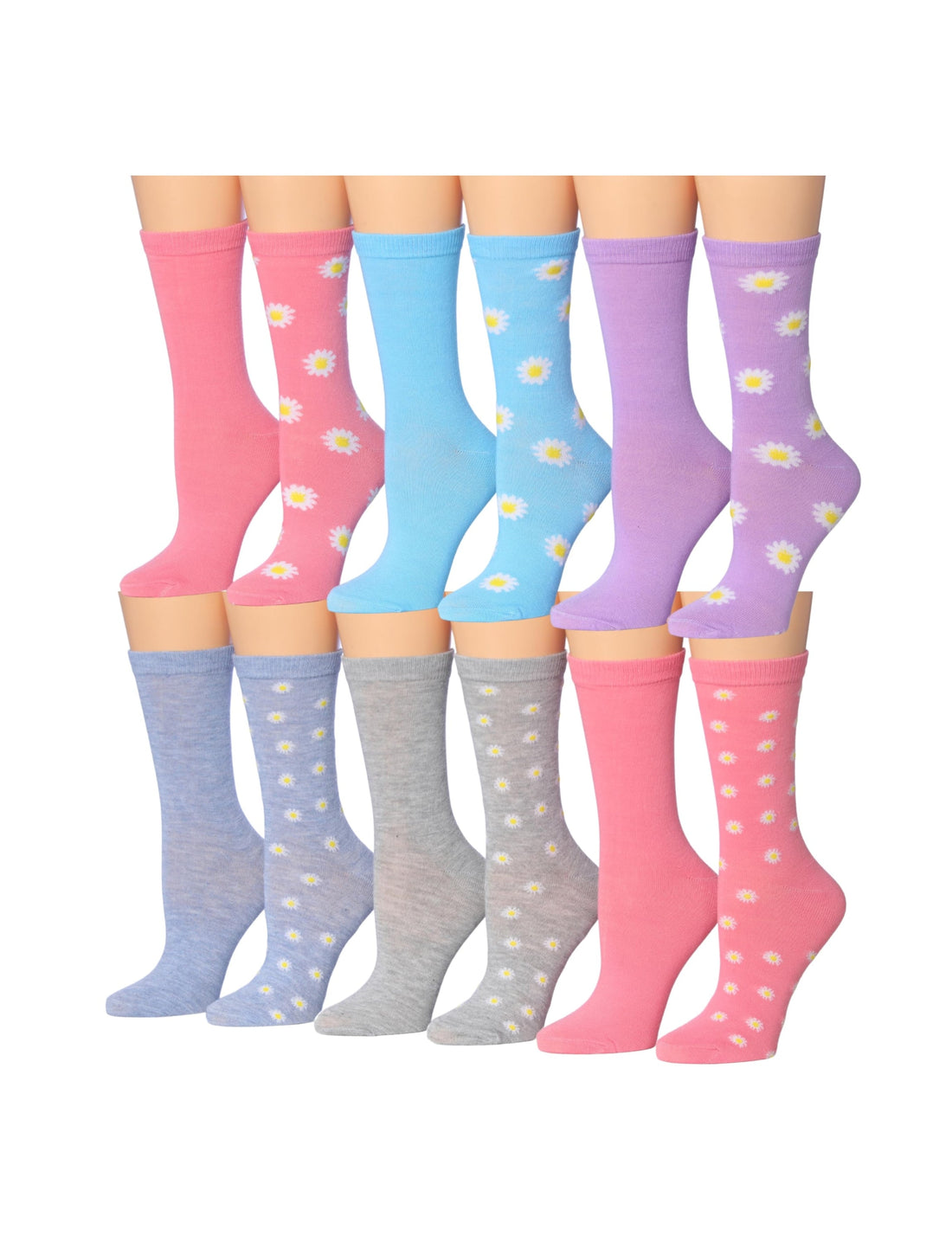 Tipi Toe Women's 12 Pairs Lightweight Colorful Patterned Crew Socks