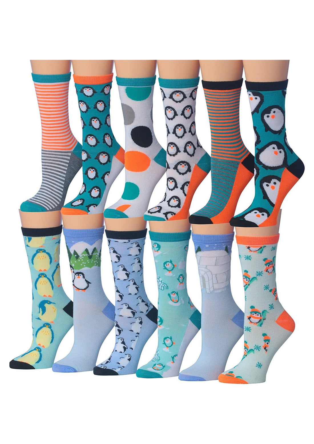 Women's 12 Pairs Lightweight Crew Socks – Colorful Penguins Design