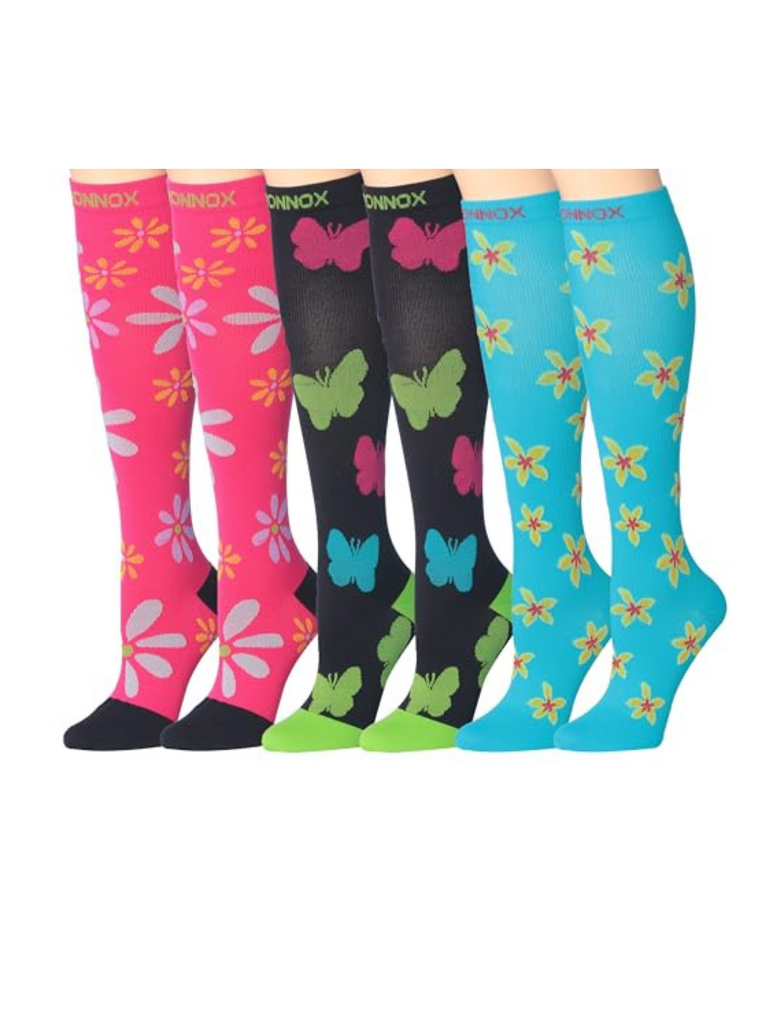 Tipi Toe 3-Pairs Compression Socks for Men & Women Floral Fantasy