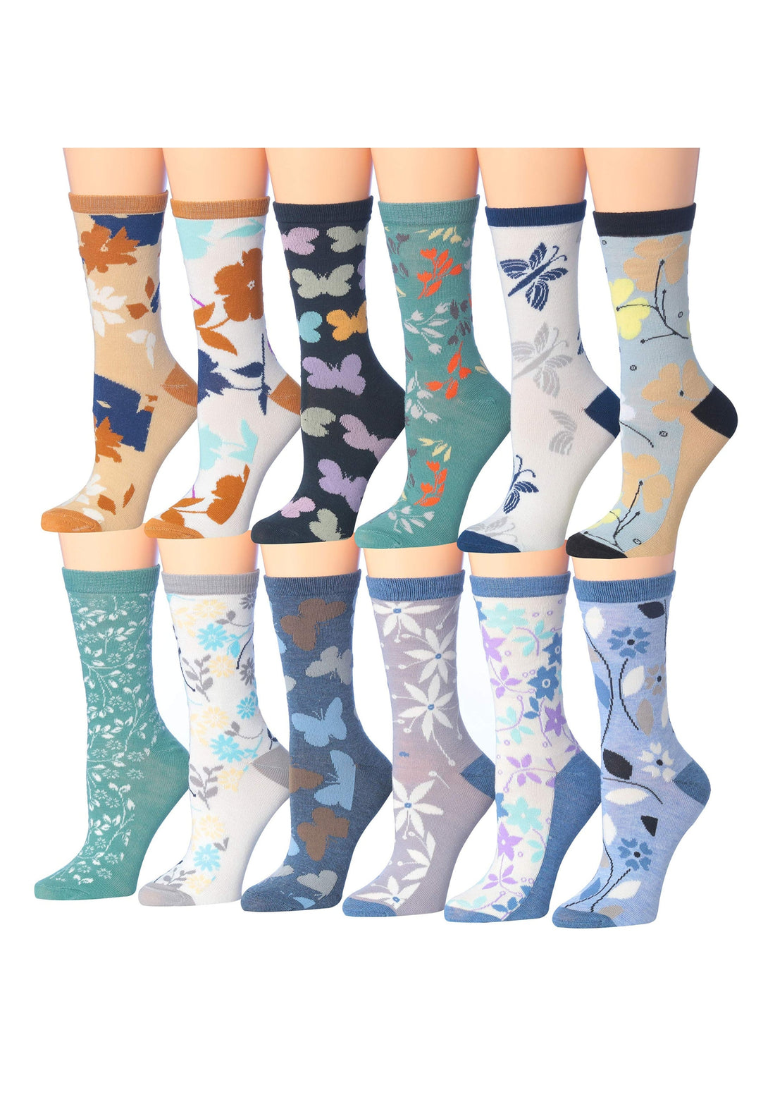 Women's 12 Pairs Lightweight Crew Socks – Colorful Nature Leaf Flower