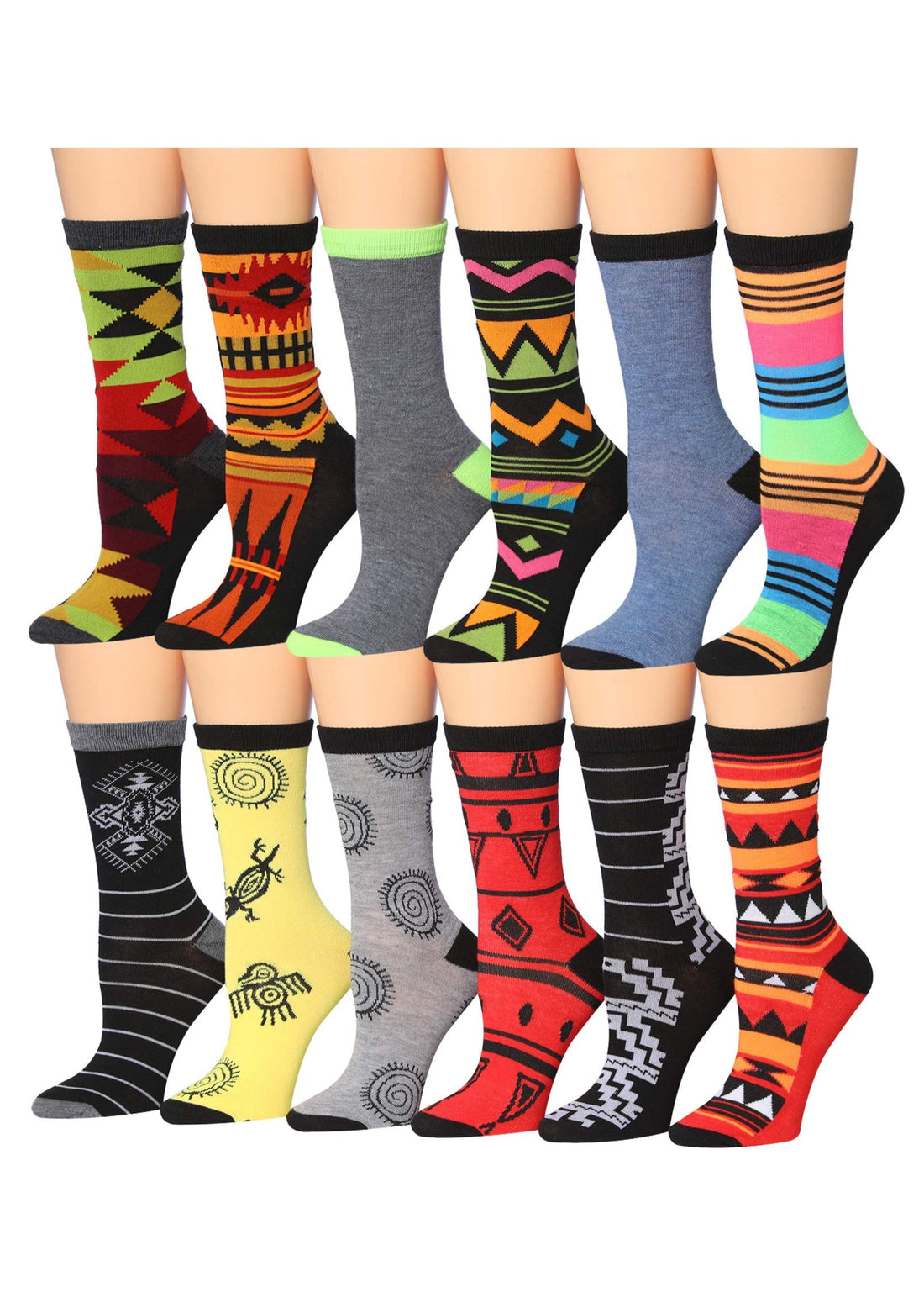 Women's 12 Pairs Lightweight Crew Socks – Colorful African Design