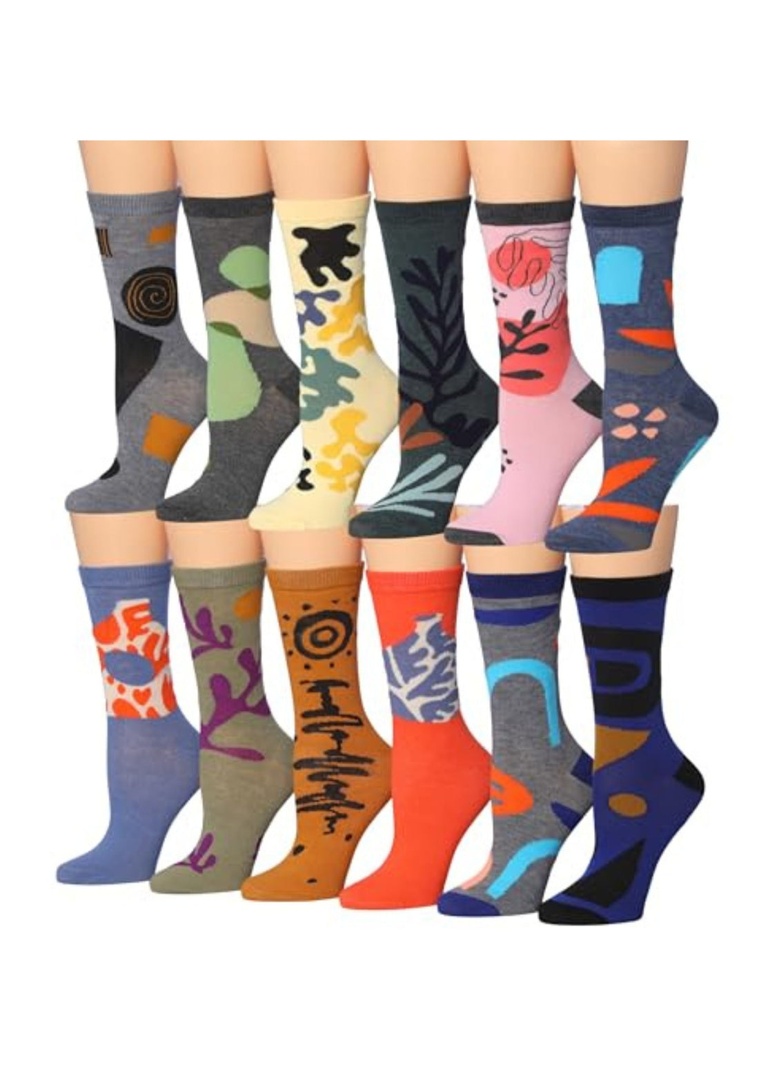 Women's 12 Pairs Lightweight Crew Socks – Colorful Diverse Abstract