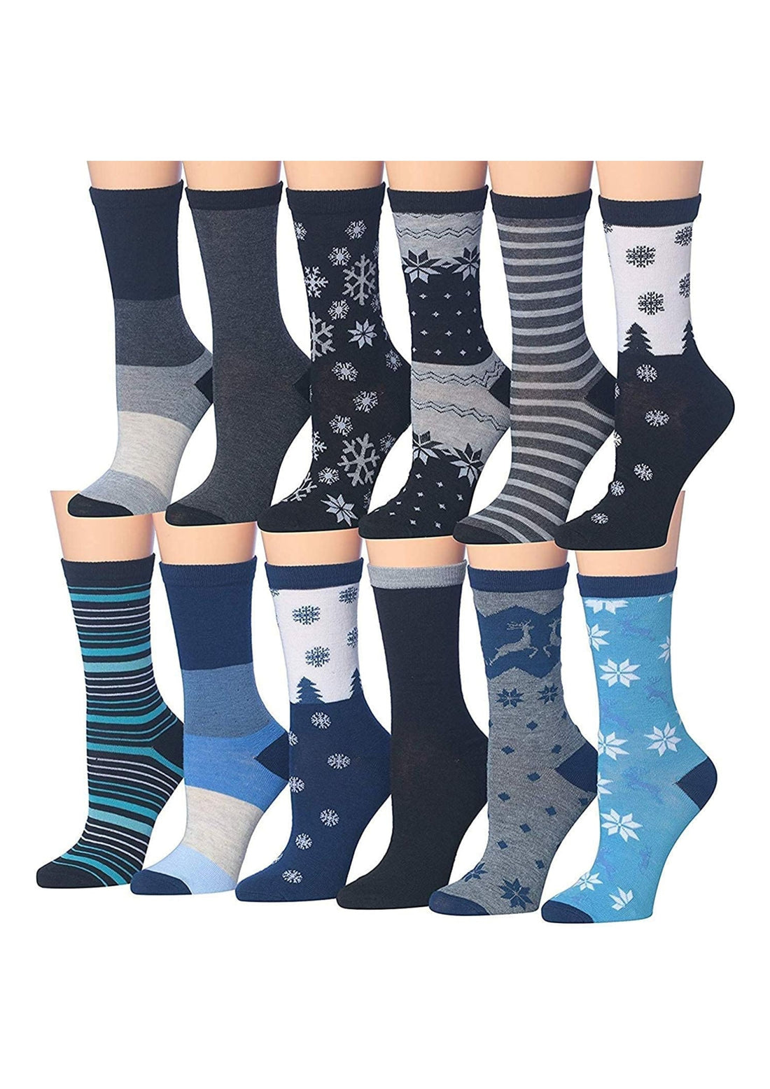 Women's 12 Pairs Lightweight Crew Socks – Colorful Snowflakes Winter