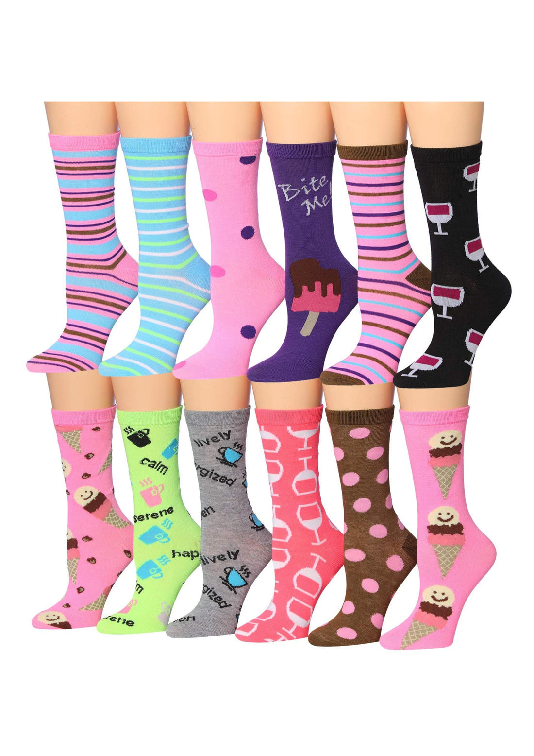 Women's 12 Pairs Lightweight Crew Socks – Colorful Ice Cream Patterns