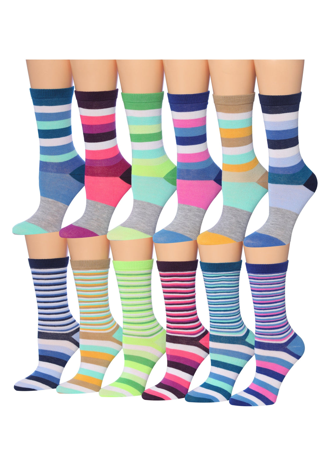 Women's 12 Pairs Lightweight Crew Socks – Colorblocks Striped Patterns
