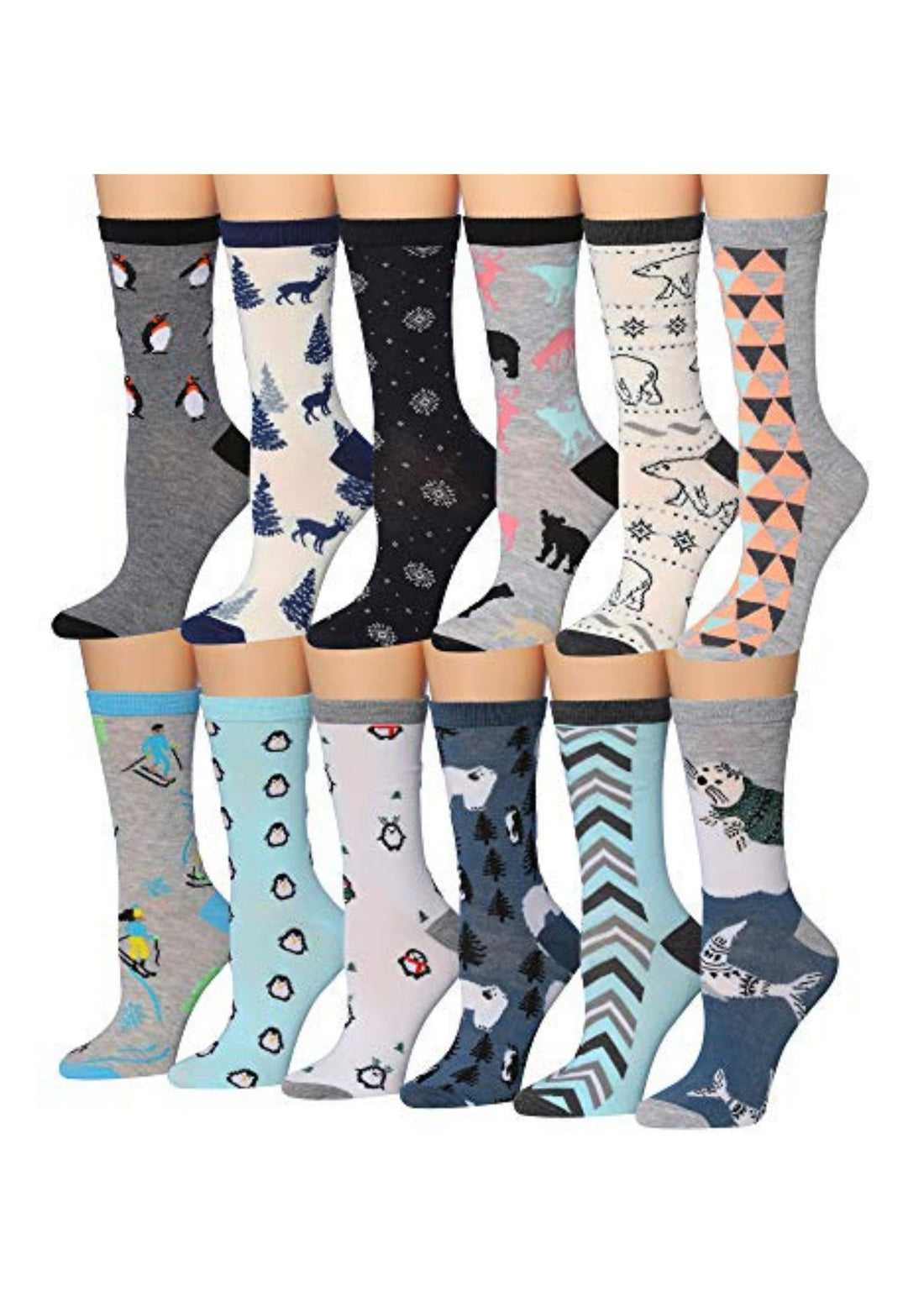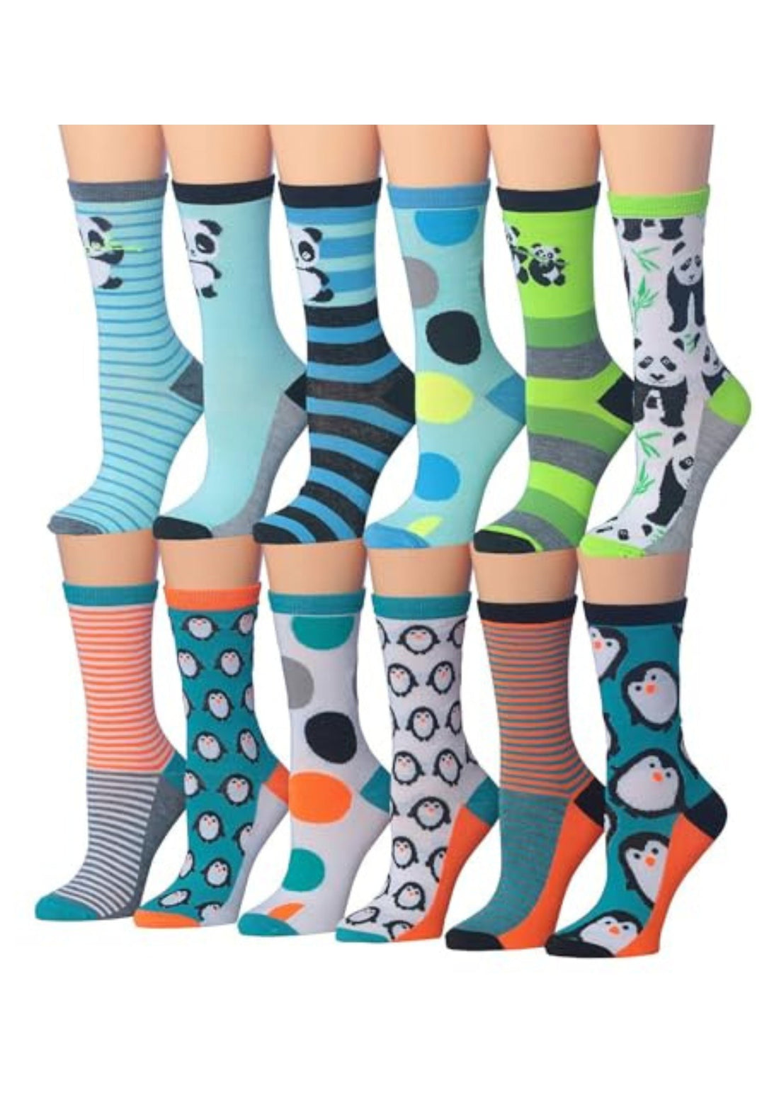 Women's 12 Pairs Lightweight Crew Socks – Colorful Panda, Penguin