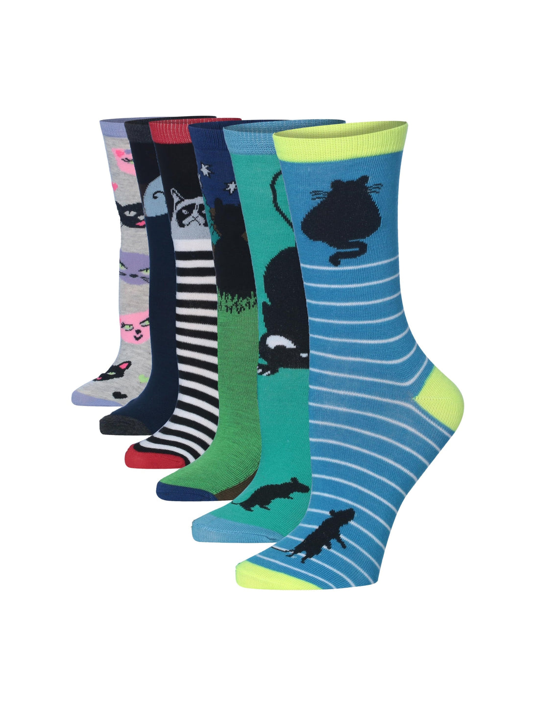 Women's 6-Pairs Lightweight Novelty Colorful Fashion Crew Cat Socks