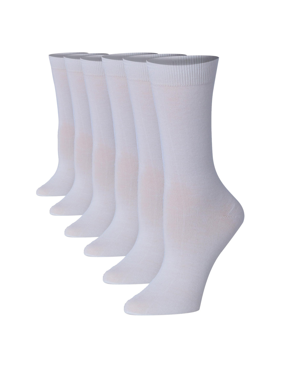 Women's 6-Pairs Clean Pure White Elegance Funky Crew Dress Socks