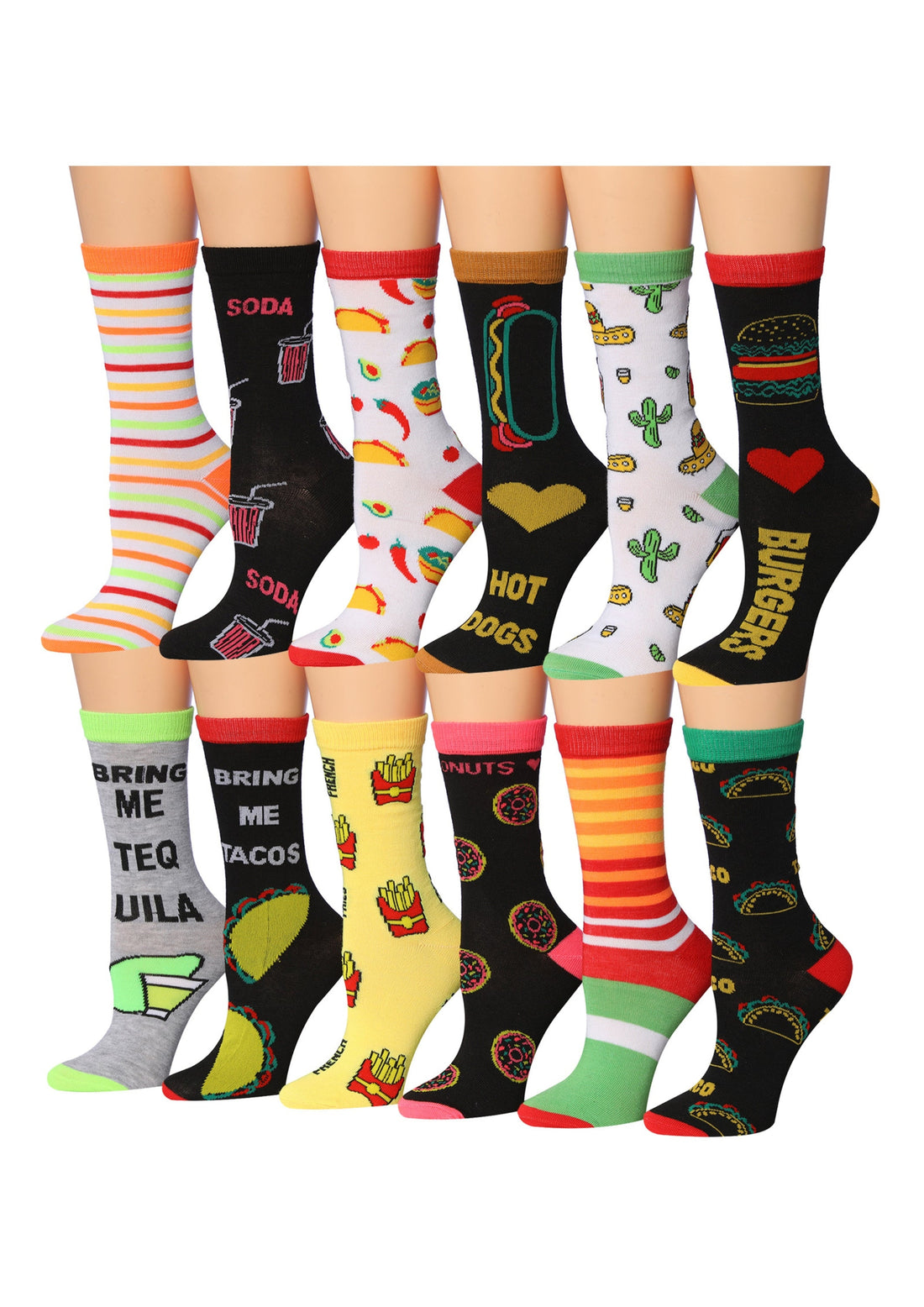 Women's 12 Pairs Lightweight Crew Socks – Colorful Fast Food Variety