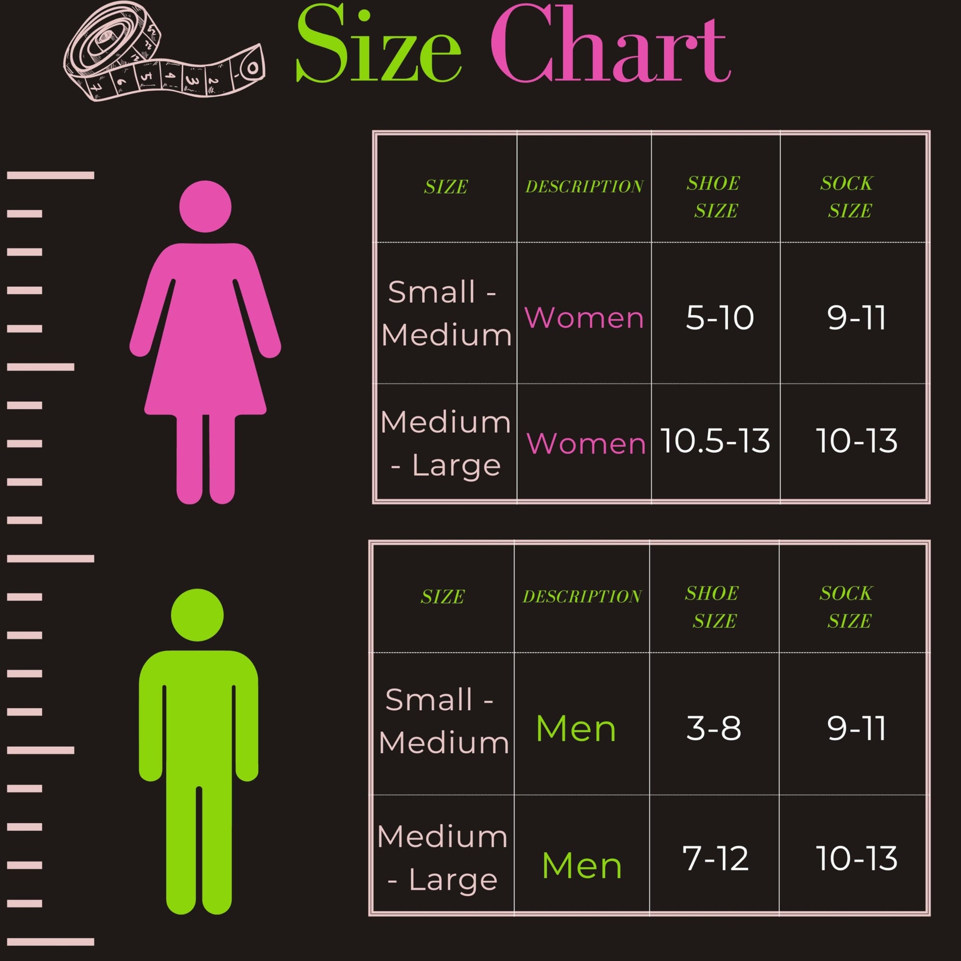 Size: Small/Medium Fits Men's Shoe Size: 3-8, And Women's Shoe Size: 5-10; Sock Size: 9-11