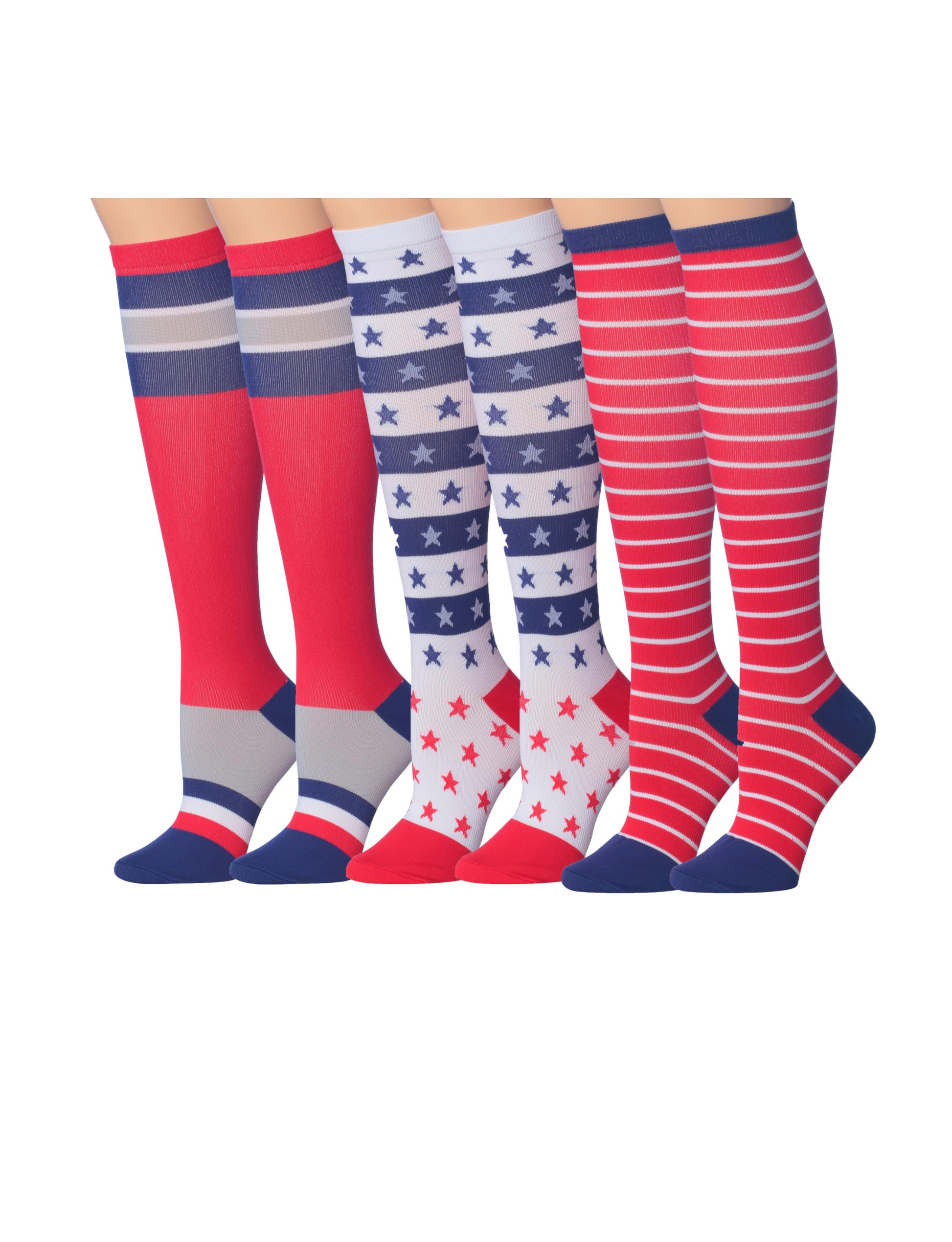 Tipi Toe 3-Pairs Compression Socks for Men & Women Patriotic Trio Red