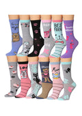 Women's 12 Pairs Lightweight Crew Socks – Colorful Animal Friends