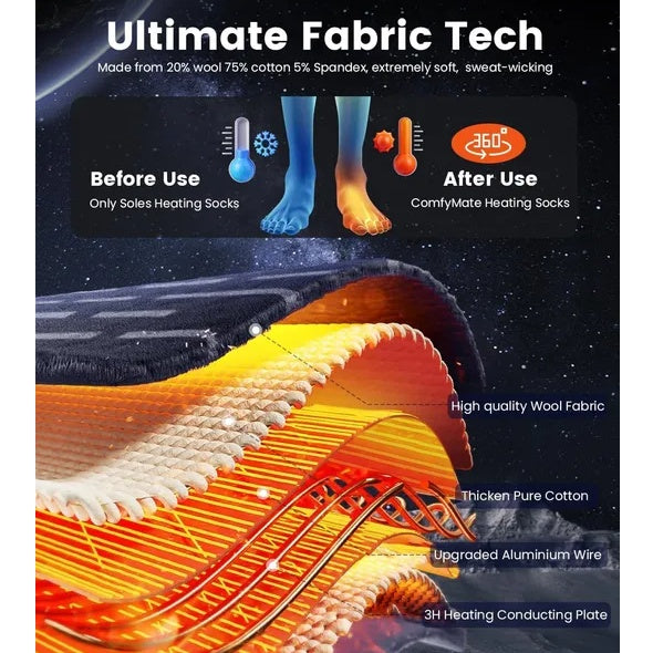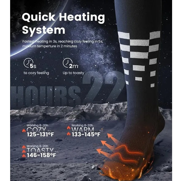 [360° All-Round Heating]- Our electric heating socks wrap heating elements around the toes, top and bottom of the foot, allowing you to experience all-round warmth. Let every inch of your feet be enveloped in soothing, even heat. No more cold spots or discomfort!