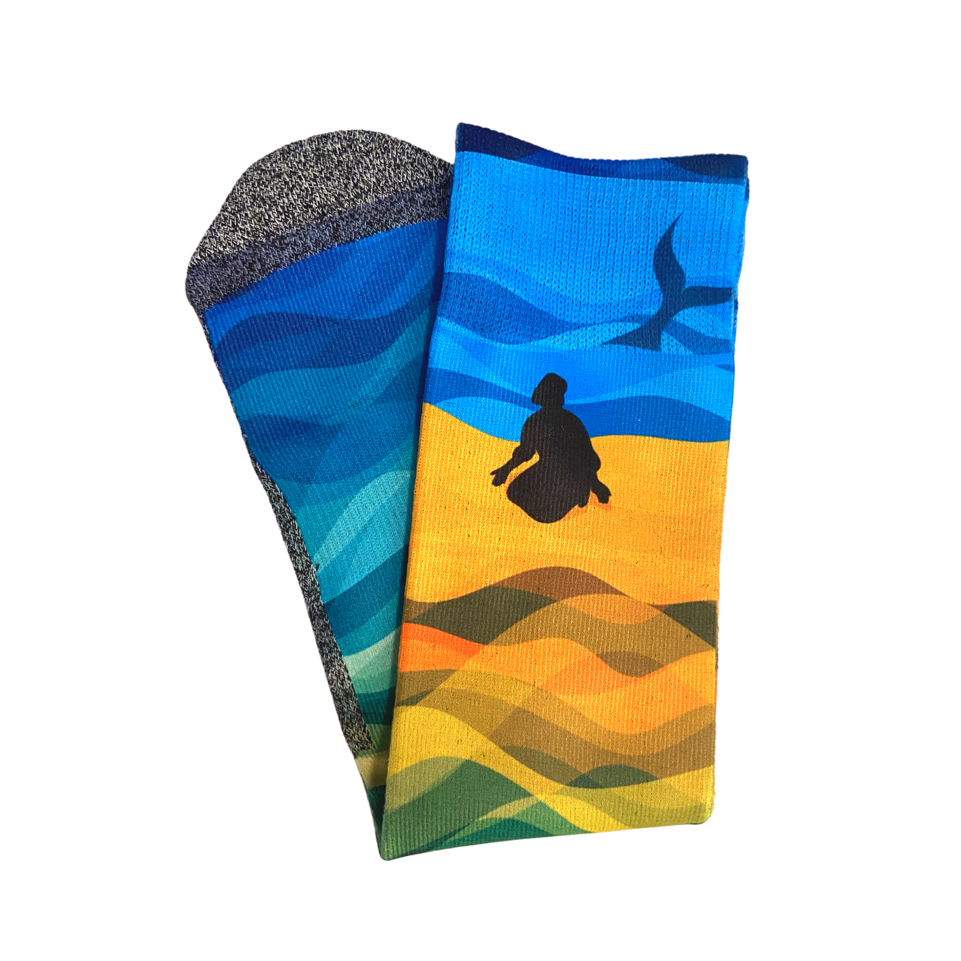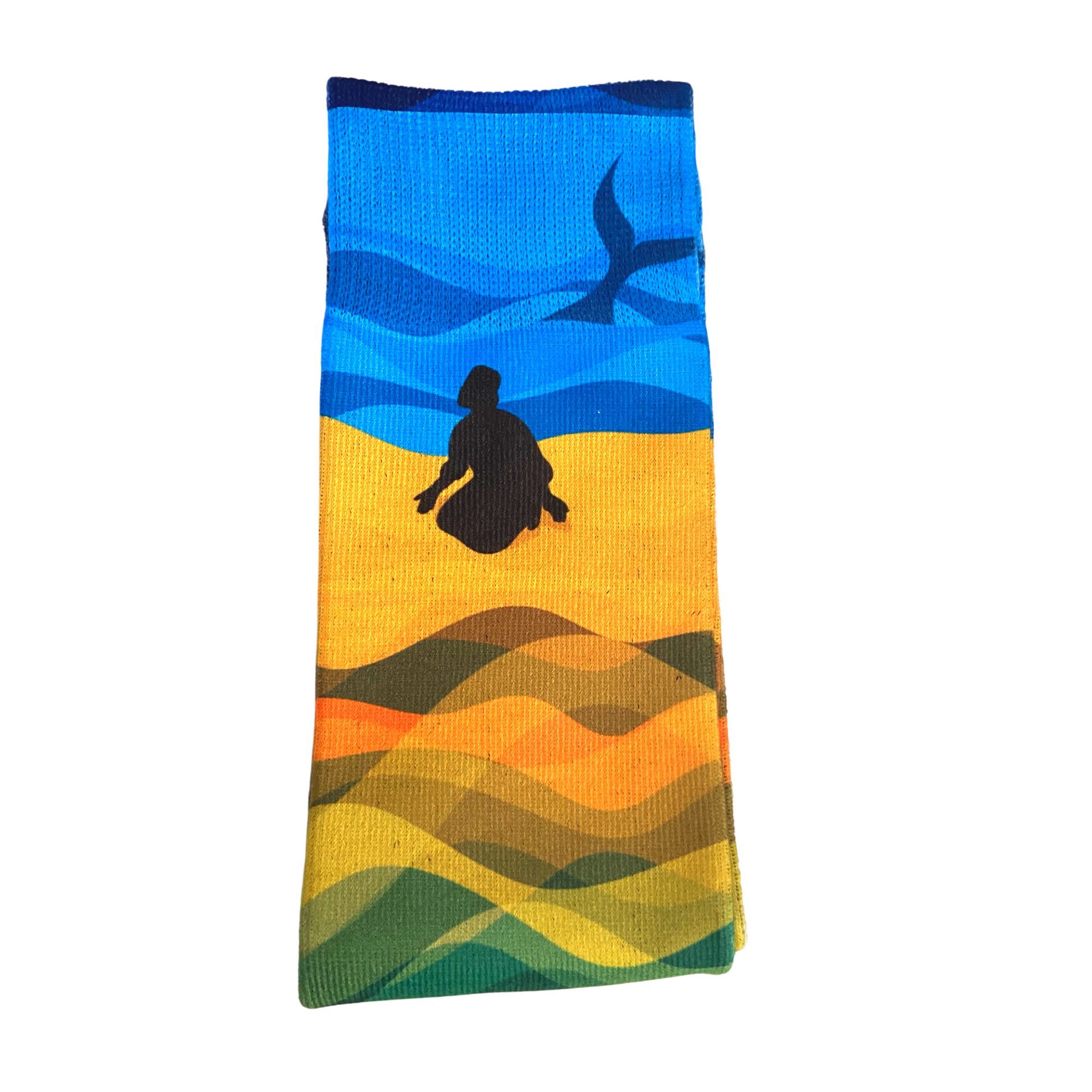 Ain't no running from this gorgeous, vibrant colored sock which portrays the prophet Jonah appealing to the Lord for "a second chance". What a great reminder that he does the same for us!