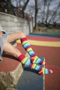 Women's Red Rainbow Stripe Knee High Socks