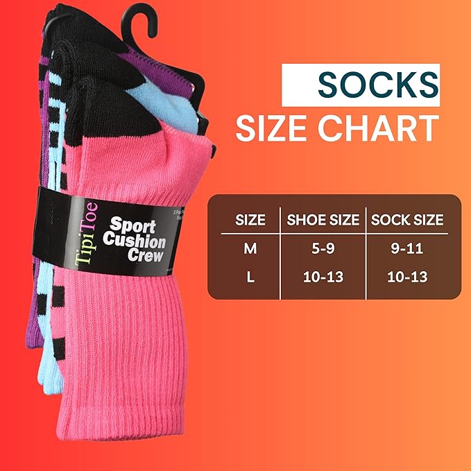 Size: Fits Sock Size: 9-11; Shoe Size: 5-9, ensuring a comfortable and snug fit for most women crew socks