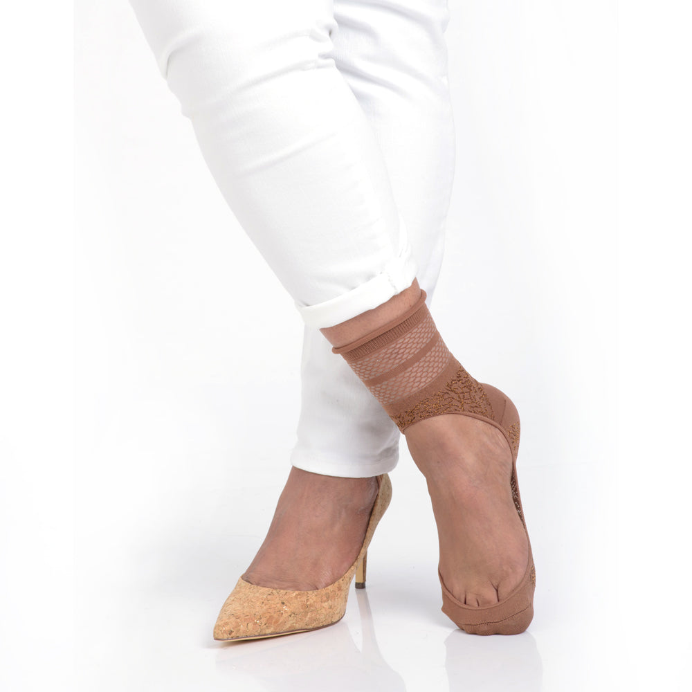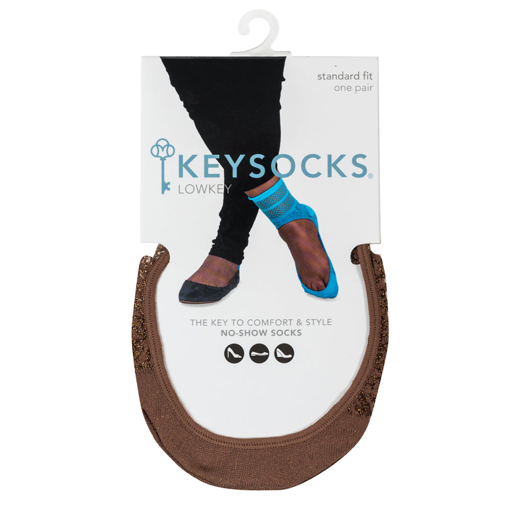 o Shiny metallic yarns are the magic that keeps these low-cut Keysocks from slipping!