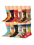 Men's 12 Pairs Casual Novelty Foodie Fantasy Colorful Patterned Dress
