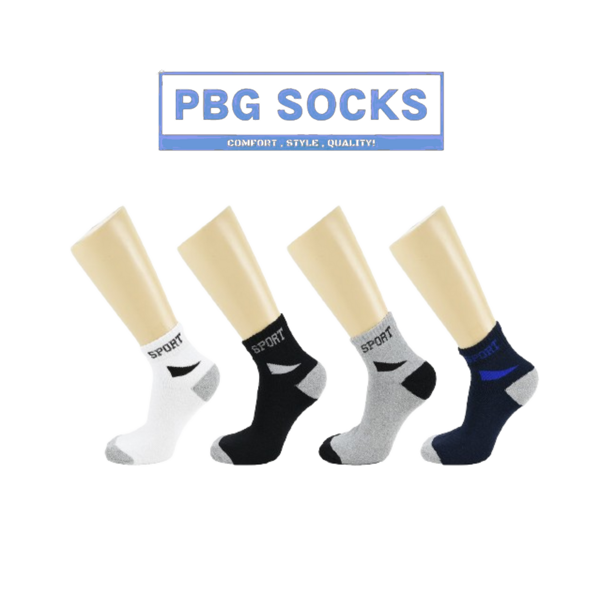 Men's Athletic Ankle Socks Sport Size 10-13 Cotton Blend Comes in pairs of 6 and 12 Comfort, support, and durability are just a few of the benefits you'll get with each pair of these Men's Athletic Ankle Socks. Made with a soft cotton blend, they offer a snug fit that won't slide down during even the most strenuous workouts. And with options of 6 or 12 in a pack, you'll always have a fresh pair ready to go when you need it.