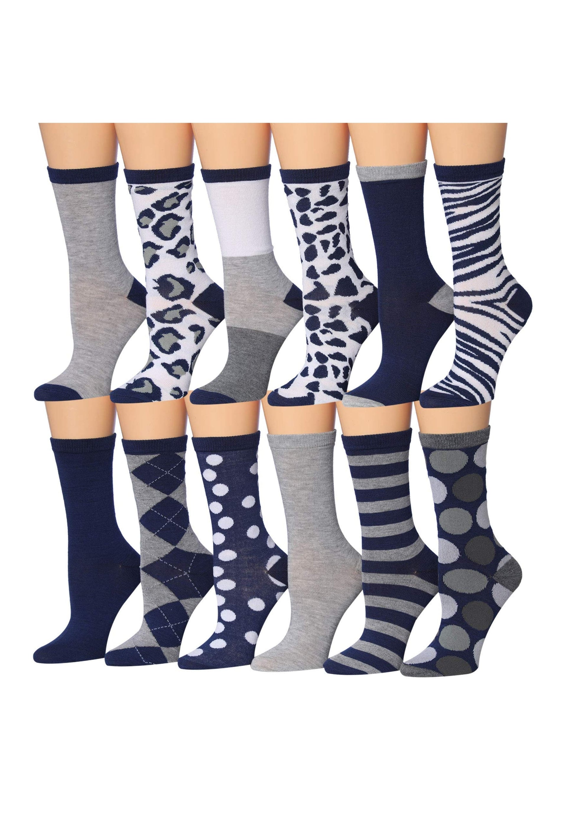 Women's 12 Pairs Lightweight Crew Socks – Colorful Geometric, Zebra,