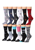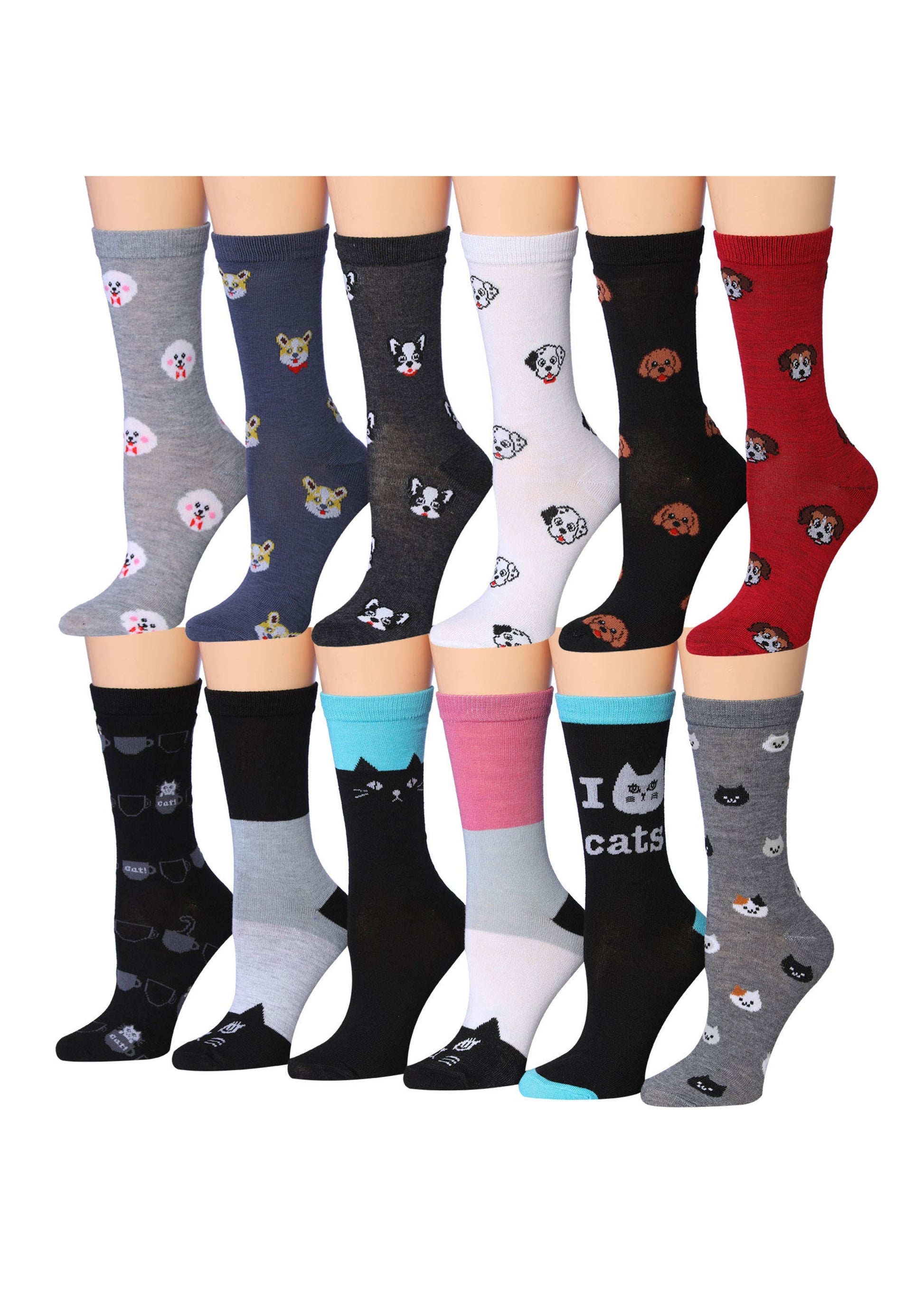 Women's 12 Pairs Lightweight Crew Socks – Colorful Dog & Cat Patterns