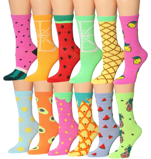 Women's 12 Pairs Lightweight Colorful Strawberry Orange Lime Pineapple