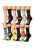 Women's 12 Pairs Lightweight Crew Socks – Colorful Fast Food Variety