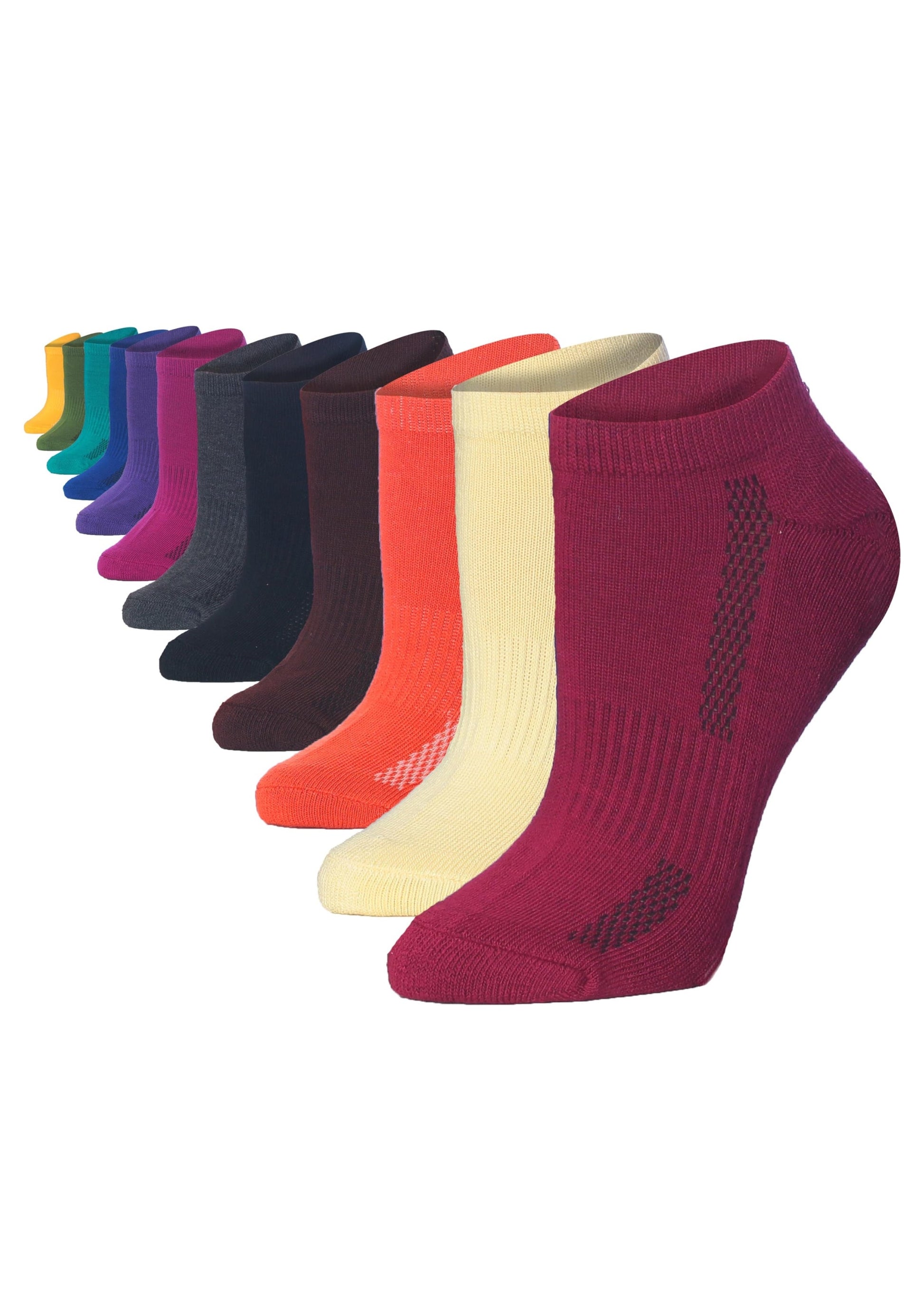 Tipi Toe Women's 12-Pack Vibrant Rainbow Solid Bold Colors Ankle Socks